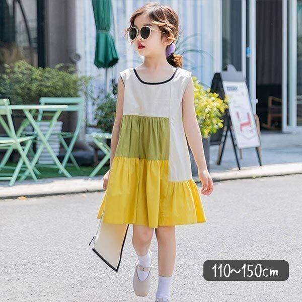 子供服 女の子 ワンピース ノースリーブ カジュアル おしゃれ お洒落 子ども服 こども服 大人っぽい ミドル丈 お出かけ 切り替え マルチカラー 夏 Aライン 韓国 K Meme Collection 通販 Yahoo ショッピング